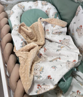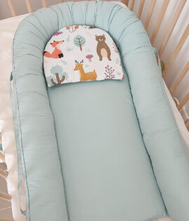 3.500,00 rsd – 4.600,00 rsdRaspon cena: od 3.500,00 rsd do 4.600,00 rsdGnezdo za bebe – mint i meda šumskić