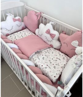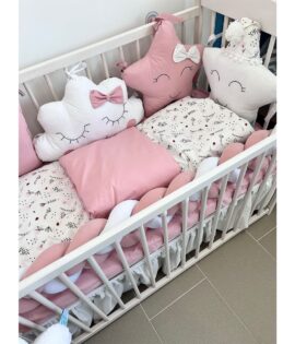 Jastučići komplet ogradica i posteljina – Puder roze i zvezdice