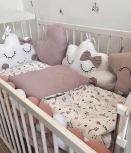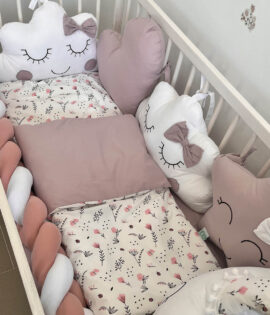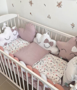 Posteljina i ogradica za krevetac – Puder i cvetići