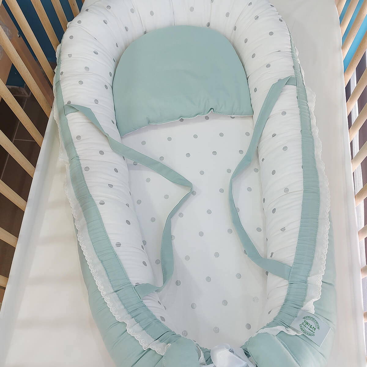 Gnezdo za bebe – mint i srebrne tufne