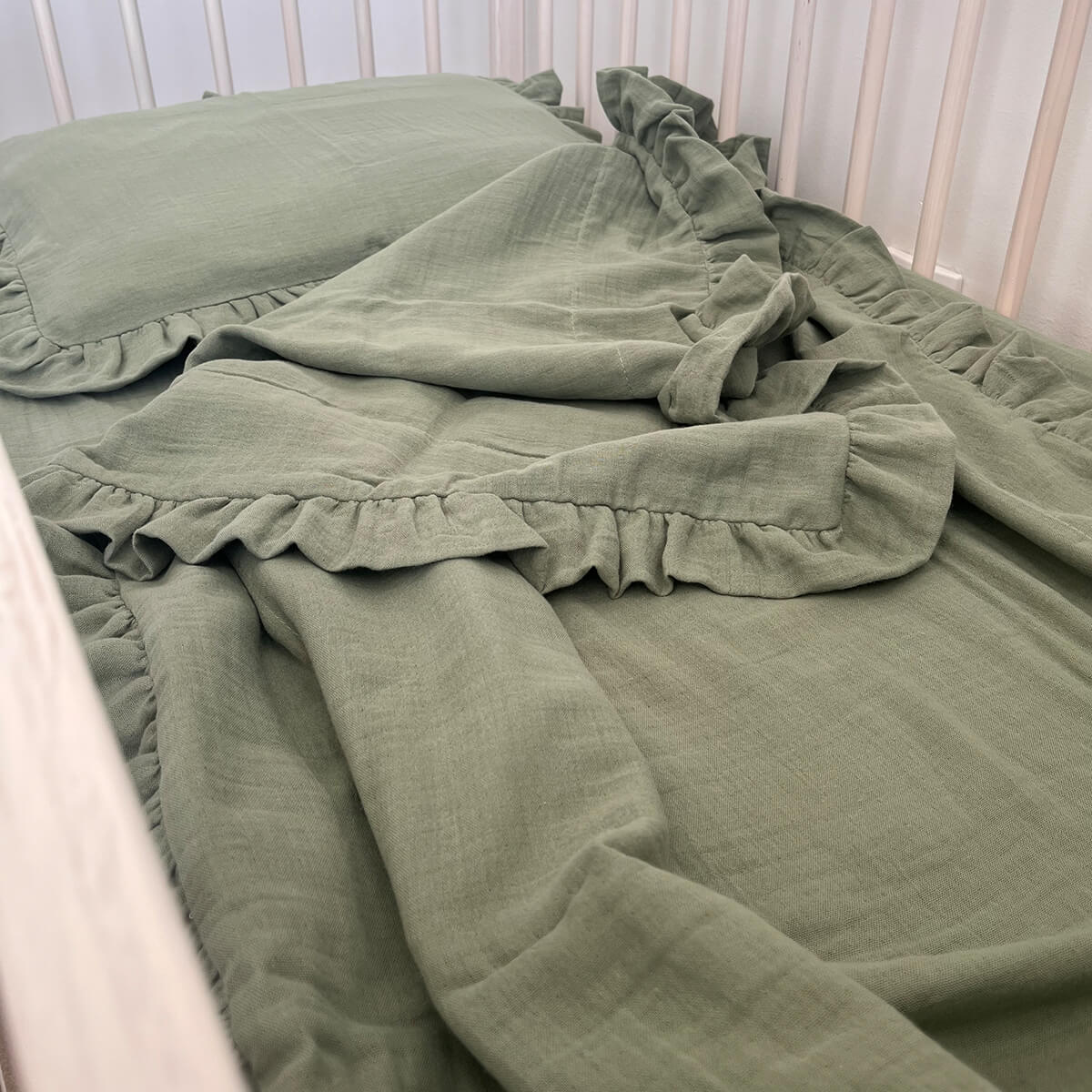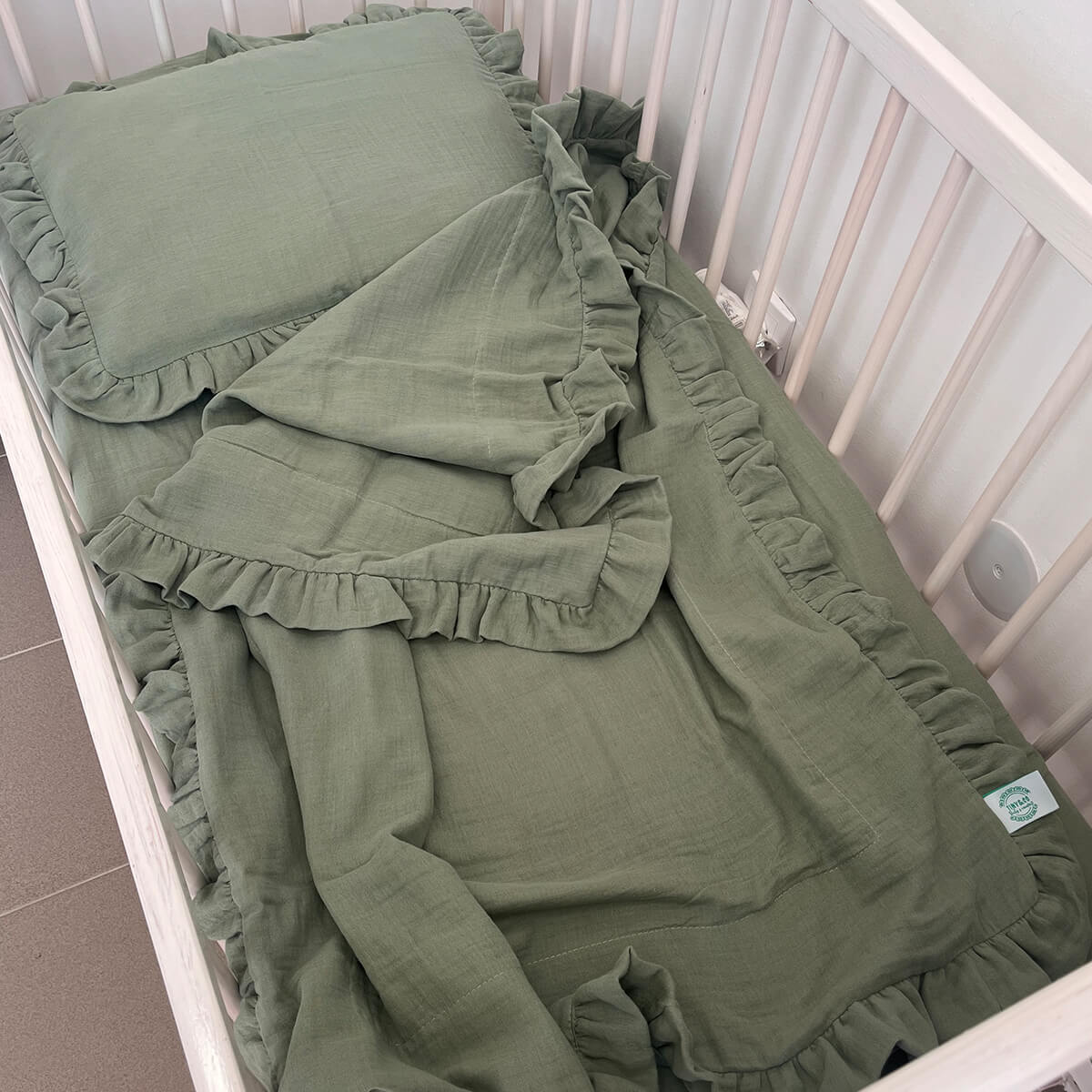 Kompletna posteljina je izrađena od 100% Muslin dvoslojnog pamuka i punjena je antialergijskim silikonskim kuglicama ili koflinom.